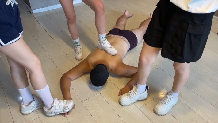 内容:三位女主倾情联演,内容是一名女主在洗手间遭遇变态偷窥,于是将其抓住后捆绑起来,又叫来两个姐妹三人共同对变态进行惩罚。踢裆、耳光、全体重共同踩踏,强迫舔舐脏脏的运动鞋鞋底等,本片还有一个看点是,从开始惩罚起,三名女主就准备了一个玻璃杯,全程在虐变态的过程中,三名女主不间断的轮流往杯子里吐口水,到片子接近尾声时玻璃杯中的口水已经吐满半个杯子了,三名女主轮流强制性让变态男喝下去,并且还每个人又重新往男的嘴里直接吐了更多的口水。本片突出的是羞辱与折磨,鞋底、混合口水,都是不错的看点,希望同好喜欢。(里面有你们喜欢的洋子女神哟~)