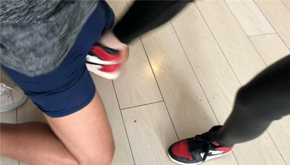 内容:本片由超暴力女神霏霏与长腿女孩乐乐倾情献映,剧情讲述的是霏霏抓获一名偷内衣的变态,之后打电话给闺蜜乐乐叫其一起来参与惩罚该变态的过程。值得一提的是:本片算是拍过的片子中,数一数二的暴力击打作品了,一度怀疑霏霏女主太过入戏,,不论是言语训斥还是踢裆动作,都特别特别的狠,一双黑网袜+小白运动鞋形成视觉反差,由于踢的过狠过快导致截图时候很虚化不太好截取,最后踢废色狼以后,霏霏女主还不解气,硬是要来一个单独的网袜脚深喉才过瘾。男M在拍完本片之后,休息了好久好久。。。。