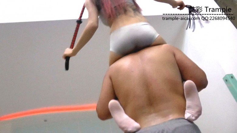 内容:黑冰女神比基尼,白色中筒丝袜虐骑贱奴,强力压制脖子,跪爬和站立行走,屁股不停的扭动,这使贱奴劳累不堪。手脚撑地肚皮朝上踩踏,坐脸闻裆,蛇鞭抽打,高难度夹住脖子做伸展运动。黑冰女神屁股和大腿长时间摧残贱奴的脖子和脸