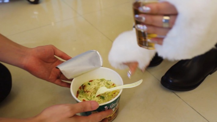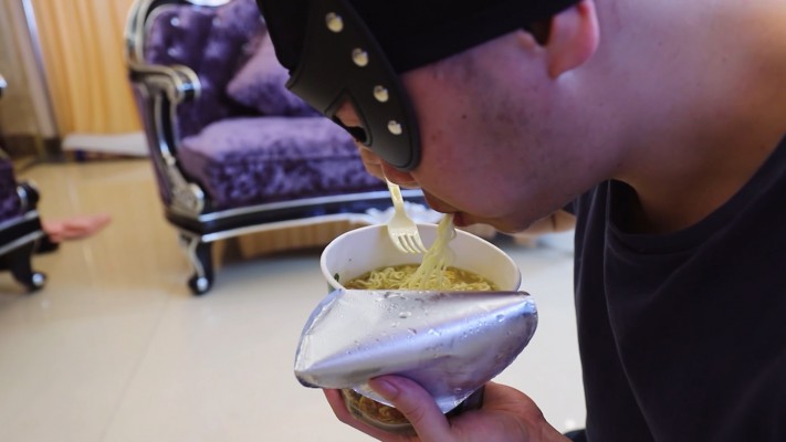 下一段为踩食物喂食,茶饮、蛋糕、奶油、以及放进鞋子里的葡萄。随后微希进卫生间接了一杯圣水出来,倒进泡面里混合,让男子吃下。