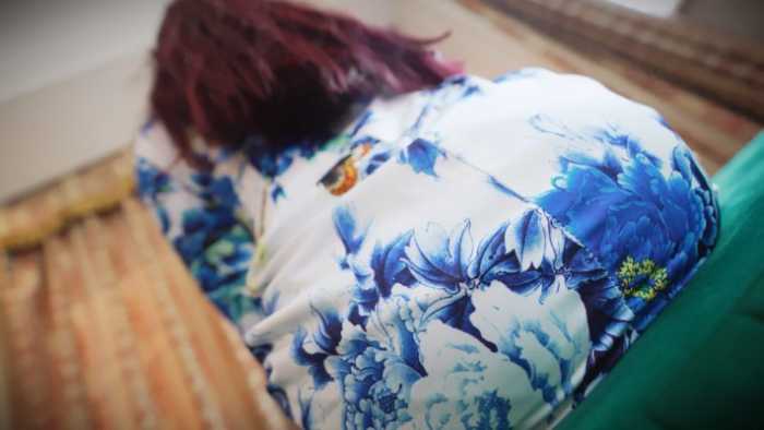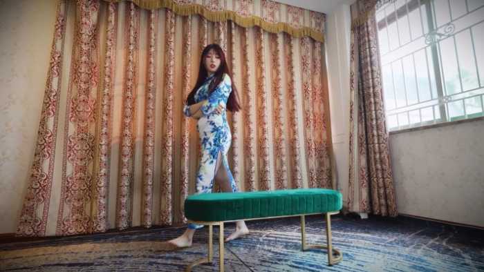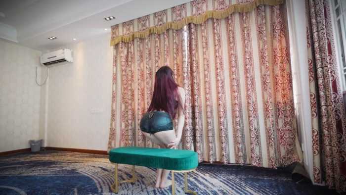 樱崎先穿旗袍,将小人放椅上坐压扭动,又贴臀摸裙后反复坐压、碾压;换背心短皮裤后继续坐压,再把小人塞裤中夹臀出门,回家后又坐压折磨。
