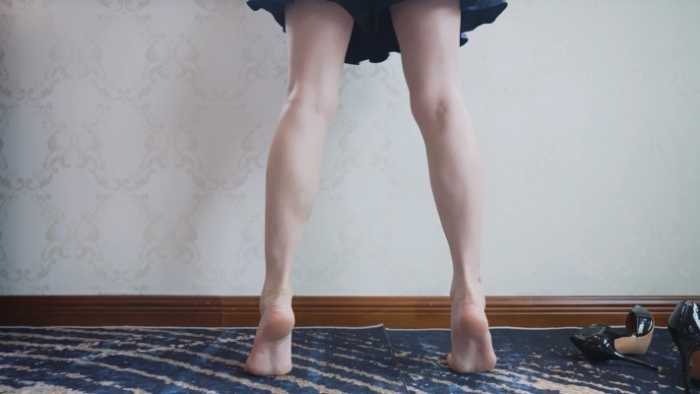 先通过瑜伽动作展现大腿、小腿肌肉曲线,再摆造型亮出手臂二头肌与小腿肌;