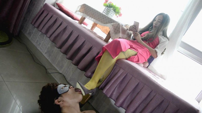 内容:舔鞋、舔丝袜脚;牛奶倒到腿上顺着脚尖流进奴嘴里;丝袜堵嘴;拿掉丝袜指挥舔脚