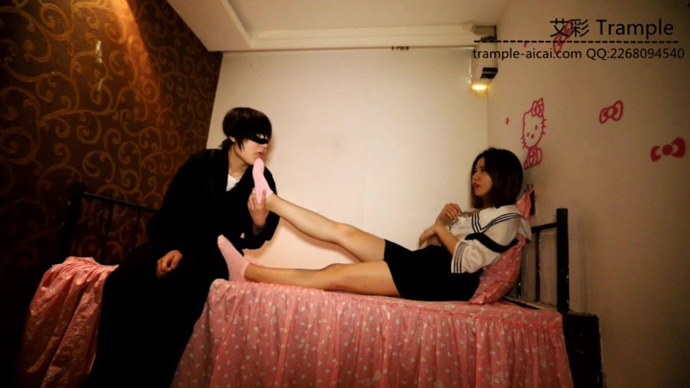 奈奈跪在真希的面前 大口的舔着真希的脚真希违心的说着一些暧昧的话