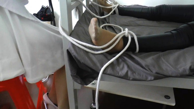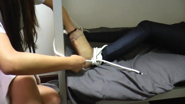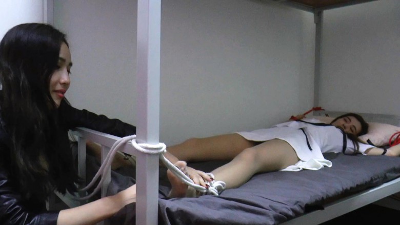 内容:学校里的女混混瑞琪想给新来的老师彤彤一个下马威,找到老师抽签惩罚,结果自己却输了,愿赌服输玩挠脚心惩罚, 彤彤将她大字型绑在寝室床上,疯狂的挠她的丝袜脚底。彤彤觉得丝袜阻隔了摩擦力,扒掉瑞琪的短丝袜继续挠,果然她笑的更大声了。随后她又拿起一个巨大的毛刷,折磨的瑞琪苦苦挣扎。 很快惩罚时间到了,瑞琪不服再跟彤彤赌抽签,这次赢了,惩罚仍然是挠脚心,这回换瑞琪把彤彤绑了起来,脱掉她的高跟鞋,她拼命的报复折磨着彤彤的丝袜脚底。两个人互相不服 于是回到沙发上互相伤害 分别抱着对方的大腿同时挠对方的脚底,最后两人一起笑晕