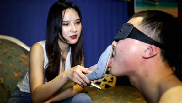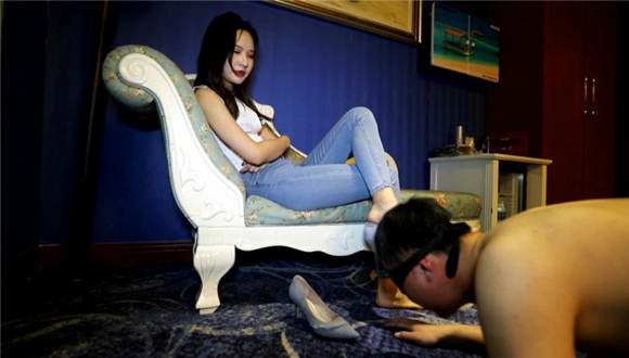 内容:新来个小瘦奴,喵女神决定让这个贱货试试舔鞋底吸吮鞋跟,感觉这贱货有点呆,赏赐他点口水吐在鞋底,贱狗屁颠屁颠的伸出舌头去舔,随即就埃了一个大耳光,是用鞋抽的,贱狗立刻沙雕了。喵女神拿起高跟鞋命令贱狗伸出舌头,用鞋底在他的舌头上蹭。 然后女神伸出脚给贱狗闻闻脚趾缝的味道,这贱货又陶醉了,一顿大耳光教育,接着用脚左右开弓一顿抽,最后一脚踹脸上躺在地上,被女神踩在脚下。。。