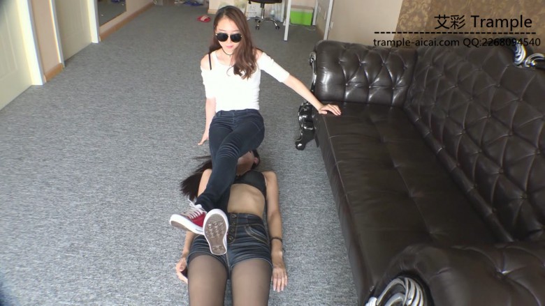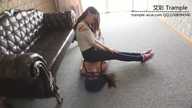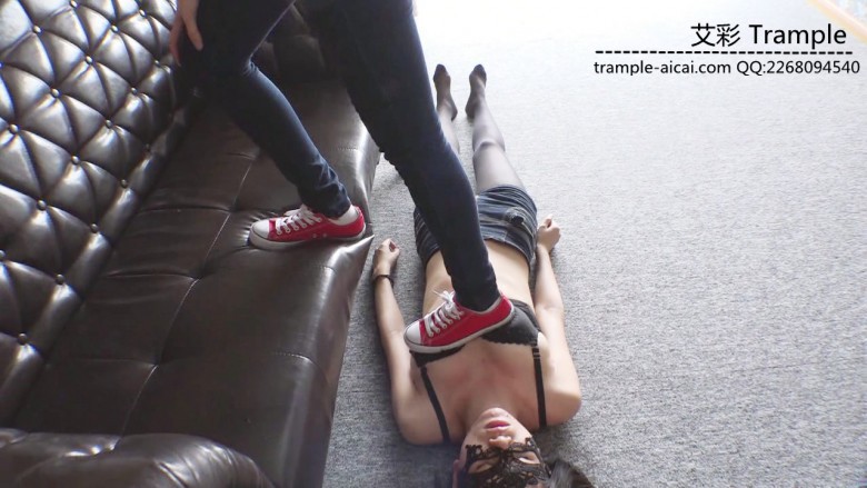 白袜帆布鞋全体重踩踏女M胸部脸头部,肚子,全体重坐女M的大胸上,当女M当沙发坐垫,地毯,脚垫,女M