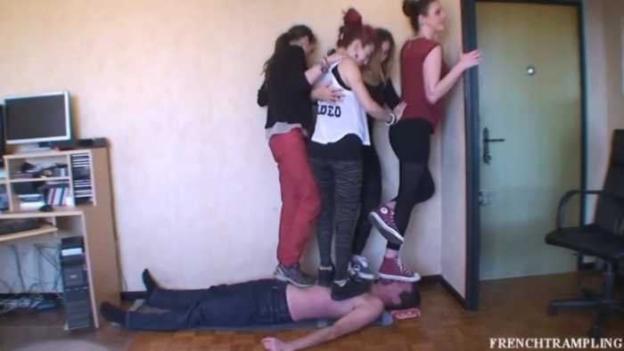 四女主板鞋帆布鞋踩脸踩头全体重踩踏 多人群踩踏人肉地毯 JS250830~6