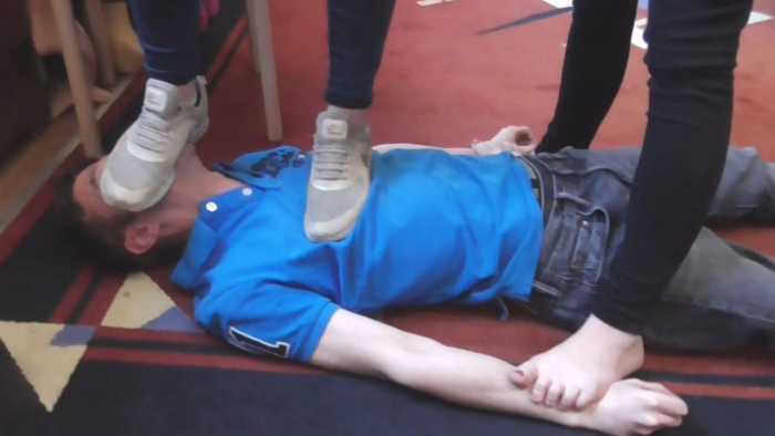简介:双美女s运动鞋踹脸插嘴,脏鞋底全体重踩脸的同时一边玉足踩裆,白嫩裸足踩脸闻脚耳光,全体重踩踏,双s重度恋足调教脚奴。
