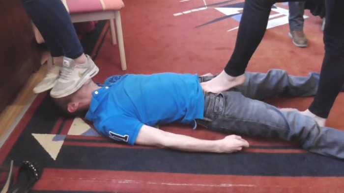 双美女s运动鞋玉足踩脸闻脚耳光踩裆踹脸全体重踩踏调教脚奴 JS260209~3