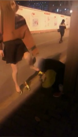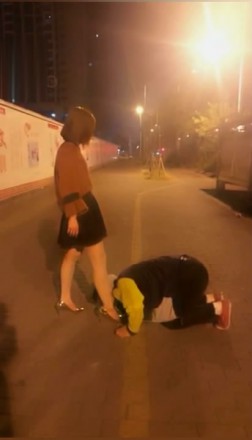 大马路玩狗-跪着让路人看-耳光扇的啪啪响