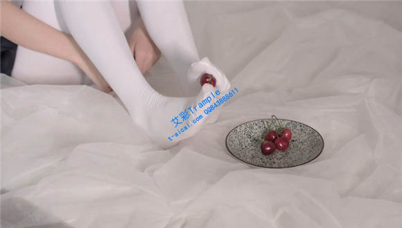 性感白丝踩樱桃
