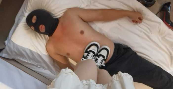 帆布鞋的鞋底是真的硬,踩在喉咙上没多久毯子觉得他喉咙要废了,事后也证明了里面有点出血,大量的帆布鞋窒息+喉咙的压迫胜过以前的双人窒息,因为鞋底真的太硬了,鞋底也容易在毯子皮肤上留下痕迹,而且鞋子踩在肚子上的感觉也不太一样,感觉受力更加集中,而且冰冰凉凉的,在女主的脚下真的感觉自己是一条没人权的小狗