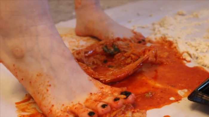 光脚踩很多食物 JS251129~6