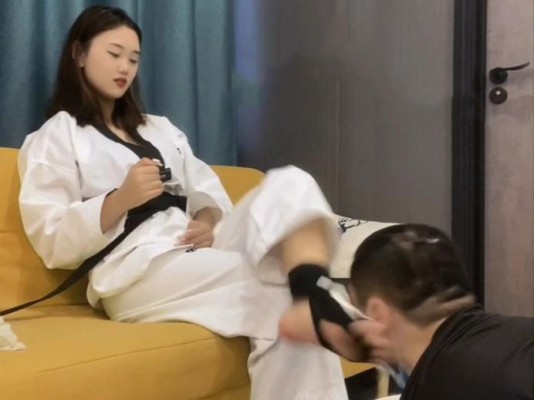【LAPAPA】初六40码大脚跆拳道疯狂脚耳光强迫贱货舔脚 大脚踹扁贱狗 YC-220804-4