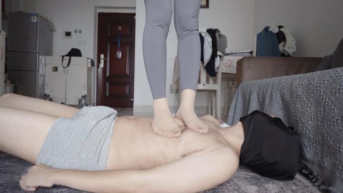 健身女教练贝琳心情不好,逼迫狗子闻她健身时穿的臭棉袜,狗子挣扎遭到贝琳腿绞,差点窒息昏死过去。紧接着又被贝琳坐在胯下用臭丝脚踩在脸上,被迫闻舔贝琳臭臭的肉丝脚,最终被踢狗裆踩狗头,完全就是贝琳撒气用的肉沙包。
