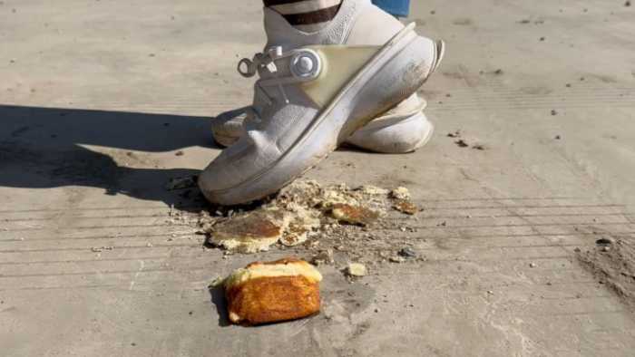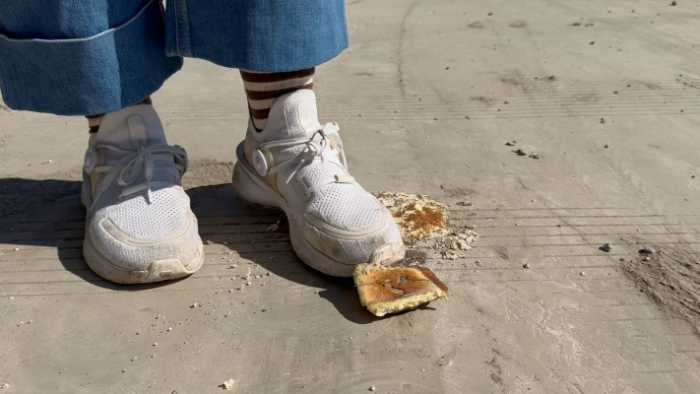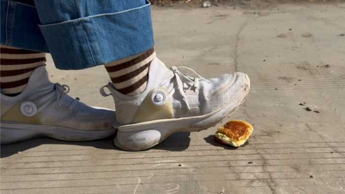 这个狗狗报名了这个小游戏,从200双鞋子里选了主人每周穿着去晨跑的白色跑鞋用来踩老式小面包