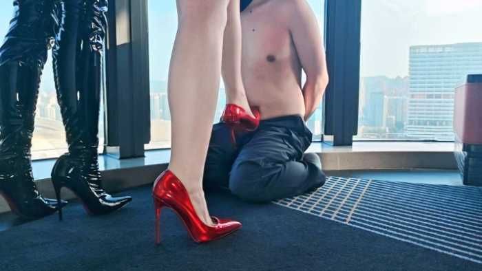 【内容简介】:高贵和服Yuki主人裸足镭射红色高跟,携手黑丝漆皮裙COCO大长腿12CM超高跟长靴,落地窗边无底线极致羞辱全家,酣畅淋漓的侮辱人格,口水耳光鞋跟扎大腿!