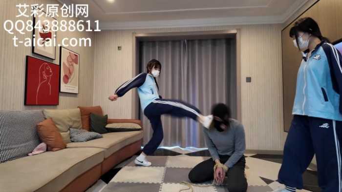 被清纯高中女生脚脚爆踹头部、骑马、跺头。