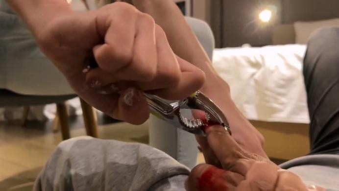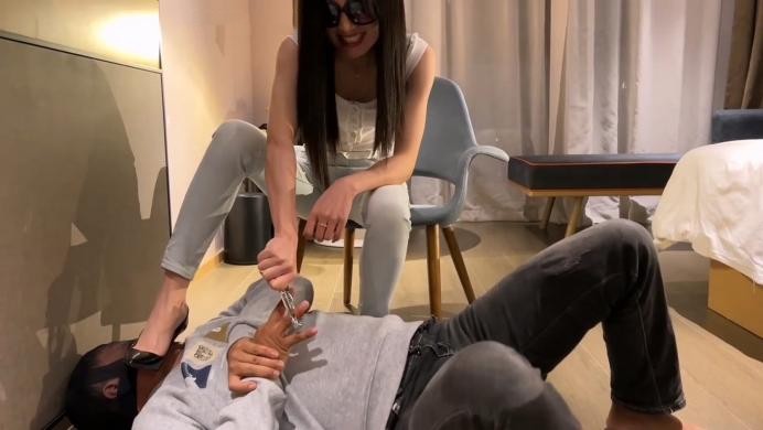 【文件预览及介绍说明】:被抓的小偷跪在地上,穿着性感紧身牛仔裤高跟鞋的女警苏老师慢慢走了过来打量了他一圈,突然女警按着他的头将他脑门重重地按压到地面同时告诉他在这儿人渣只能脑门着地乖乖地否则会生不如死,高跟鞋踩着脑袋同时问他这次又偷了什么进来的,小偷不吭声女警让他跪直随后便是重度的大耳光,每抽十个就逼他开**代,就这样每抽十个停下后不招继续抽,几十个耳光后小偷嘴角出血已招架不住了,交代了只偷高档高跟鞋的变态犯罪事实,此时女警将他脸按在地面然后跨骑在他背上,高跟鞋在他脸旁引诱着他羞辱着并让他舔舔鞋跟,看着脚下变态罪犯舔得津津有味的样子女警怒气冲天,高跟鞋内侧踢着他的脸,女警起身用高跟鞋踢他踹他直至踢倒在地,随后女警拿着核桃夹子将椅子挪到罪犯身边,女警坐在椅子上高跟鞋踩在他的脸上碾压着并对他说惯偷在这儿必须留下刻骨铭心的记忆也是帮他改邪归正,女警抓起他的左手将他的手指一根一根用核桃夹子夹出血同时高跟鞋鞋跟插在他口中并踩压着不让他发出声音,也许高跟鞋会缓解他的疼痛,否则鞋跟会刺破喉咙,就这样左手手指一根一根被夹着并不断发出惨叫求饶声,看着指头流血的变态小偷女警说下次再犯病被抓进来会让他的右手也废了彻底丧失生活自理能力,这次就给他留下小小的回忆……说完女警起身扭着腰扬长而去。