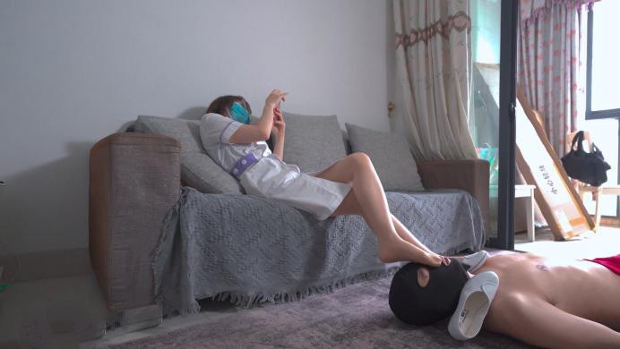 护士小姐姐上一天班累了,贱狗的狗舌头随时随地帮护士小姐姐清洁脚底