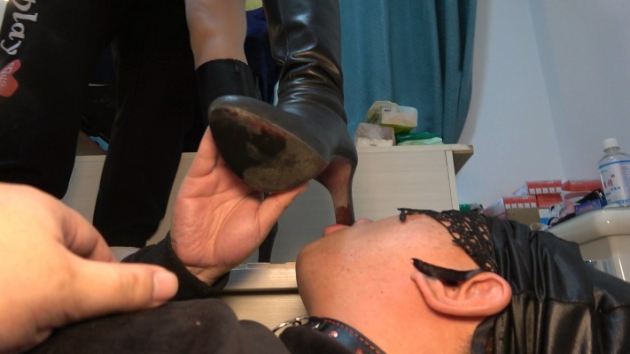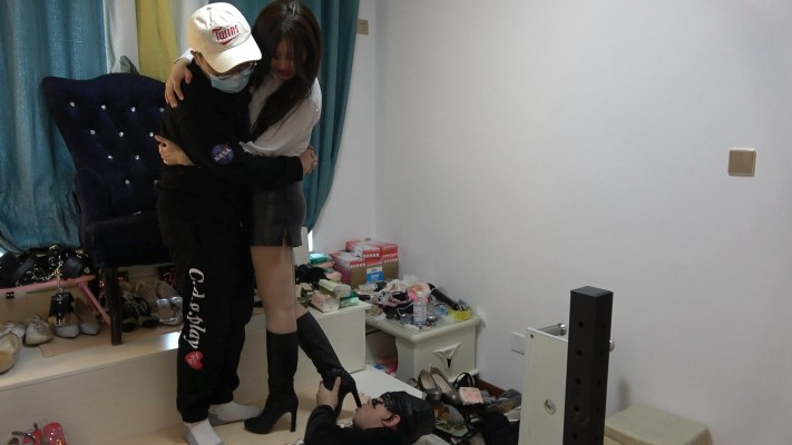 情侣主正在亲热,贱狗过来犯贱,情侣主命令贱狗舔干净鞋底并羞辱贱狗是废物,情侣主激情接吻,贱狗只能不断清理脏鞋底,尽显贱狗下贱无能。