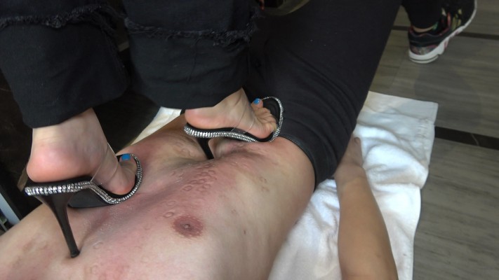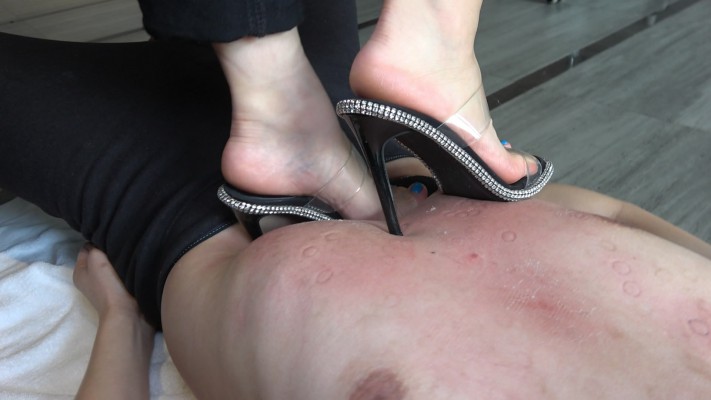 两双性感高跟踩踏,不给贱狗喘息机会,踩肚子居多,鞋跟扎进肚子里看不到鞋跟,就是让贱狗痛苦,还有高跟踩脖子,跳踩等