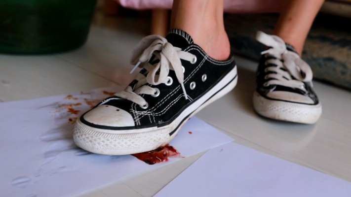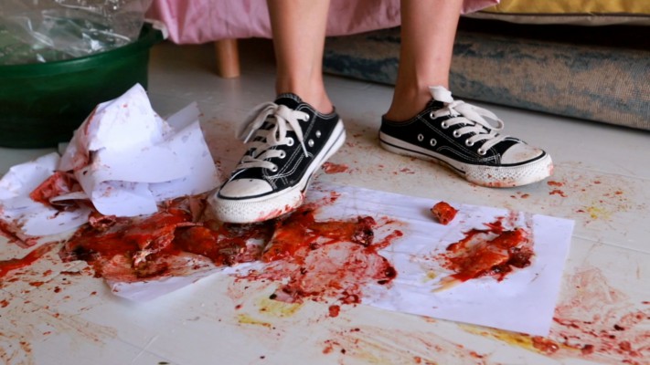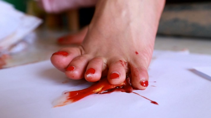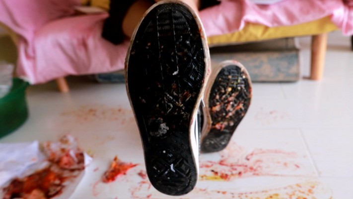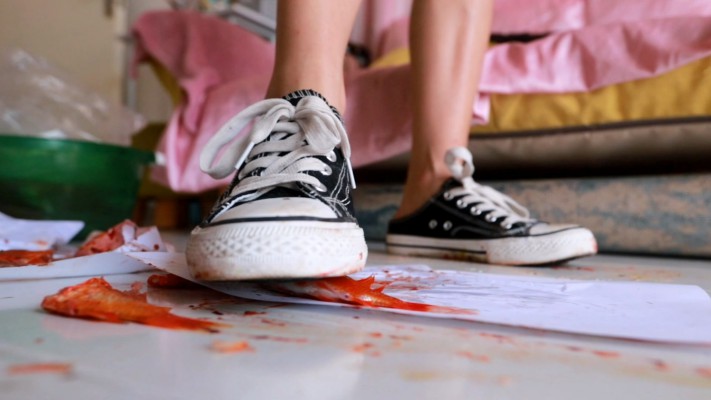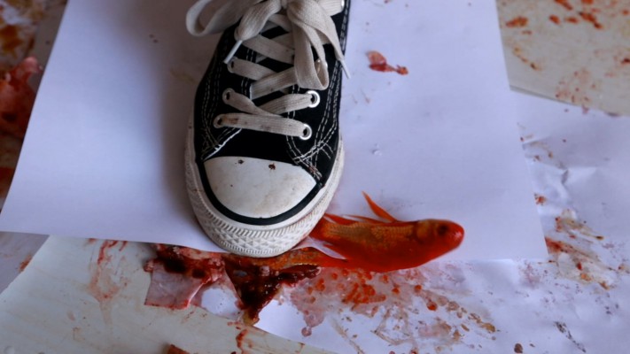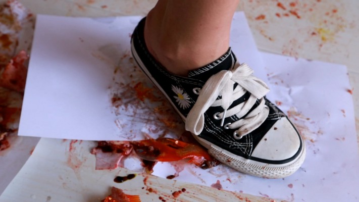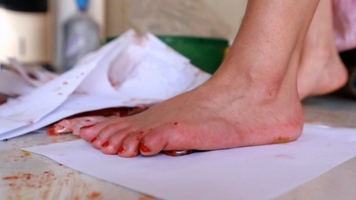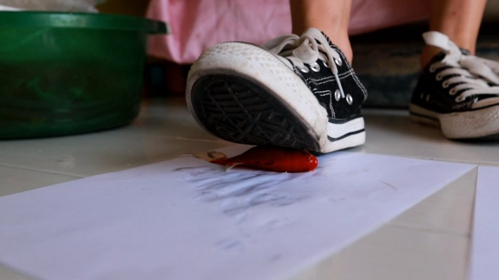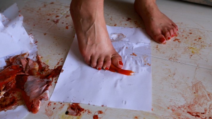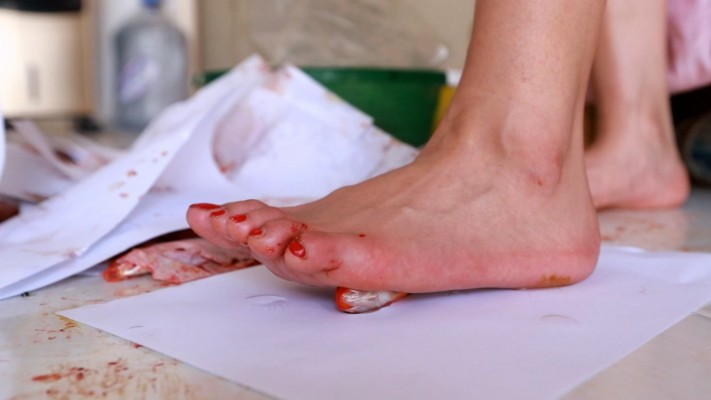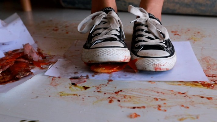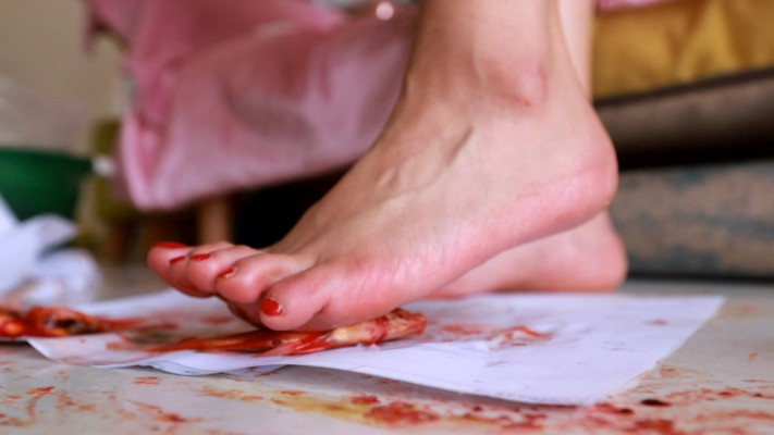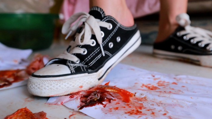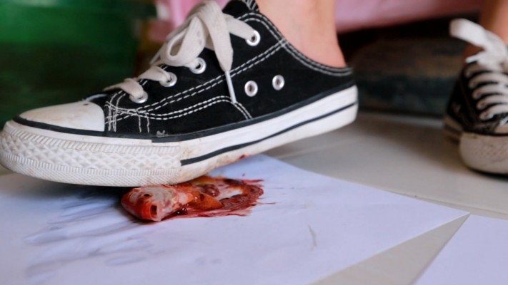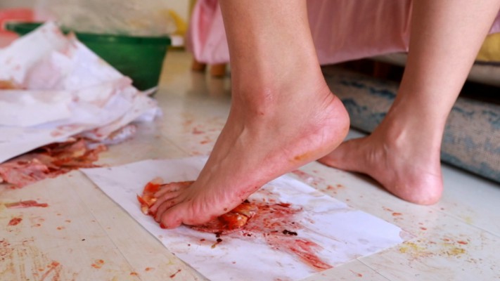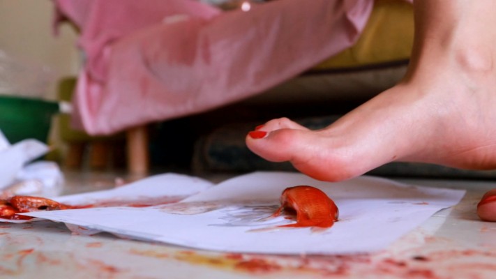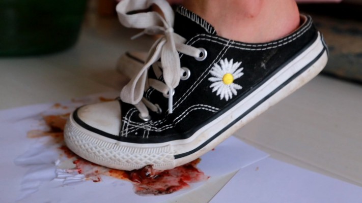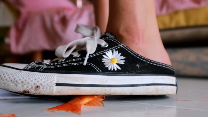 【芊芊】帆布鞋拖裸足踩金鱼爆浆