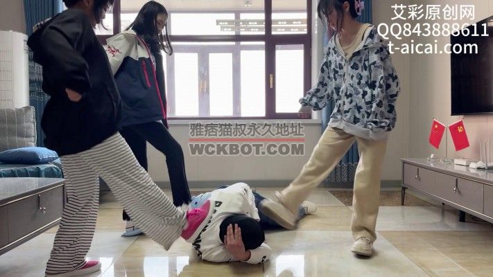 被初中生小莹小西小紫群殴,踹头、踢脸、跺脸、圈踹后还要舔干净她们沾满脚汗的臭脚……
