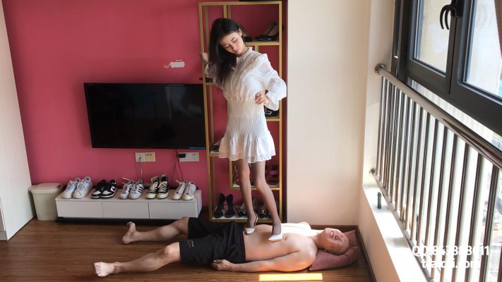 美竹姐姐穿着白色高跟鞋,不停的在小M的两个乳头上踩,觉得不过瘾,还滴了蜡在上面,然后再去踩