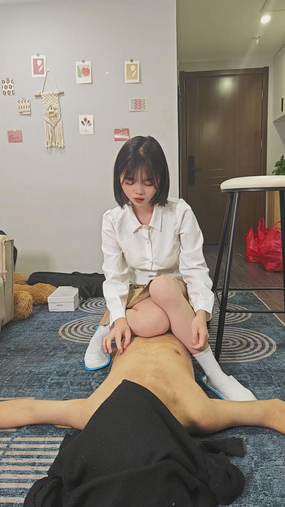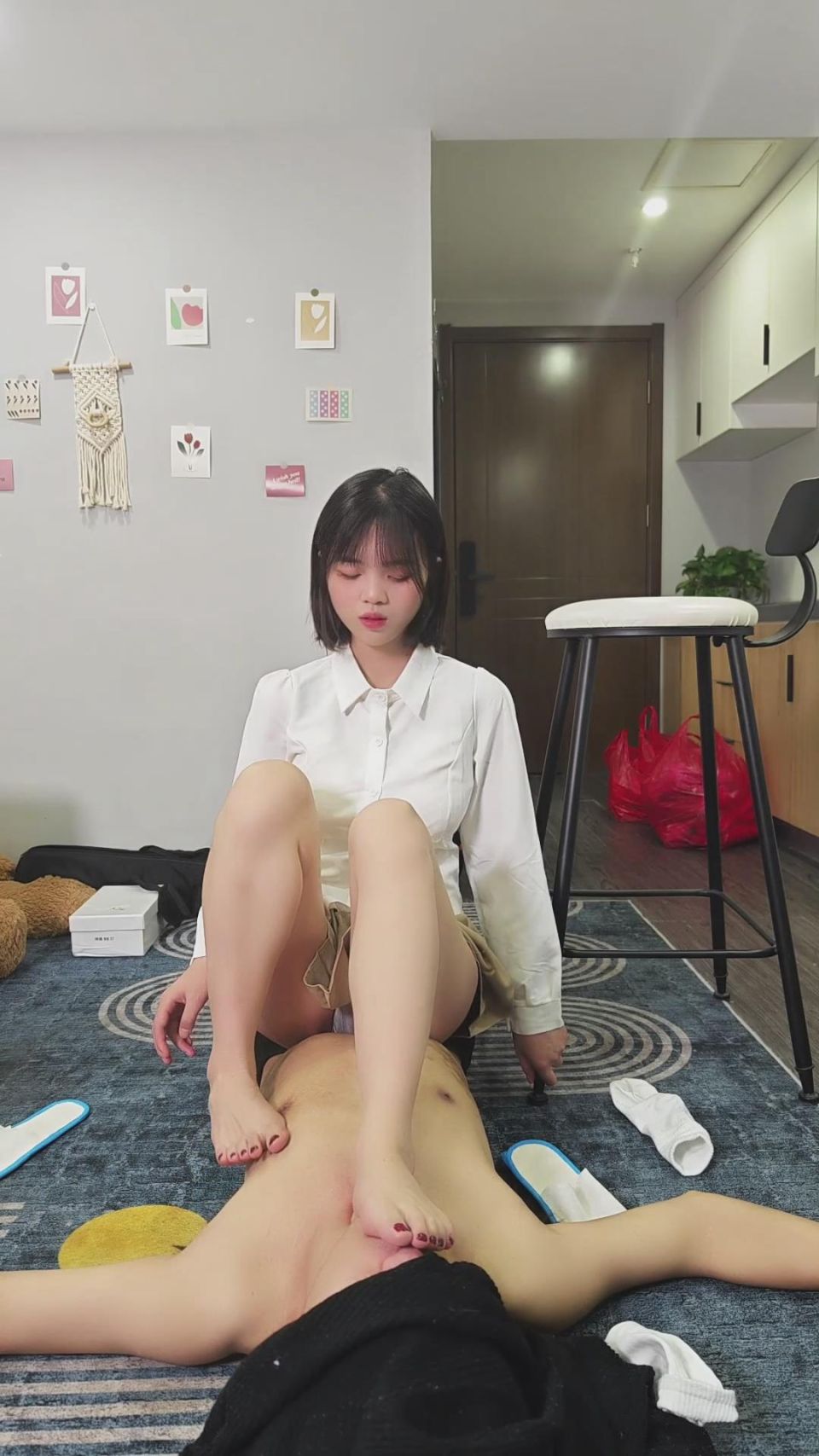 【影片预览及介绍说明】:娇娇JK装虐乳~忍耐的不错~奖励你一边舔脚一边虐你的乳~最后掐死你~