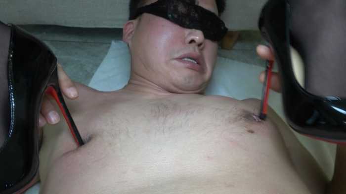 璐璐12公分红底高跟踩踏贱狗乳头,粗口辱骂贱狗,下脚丝毫不可怜贱狗疼痛,边踩边骂,踩出血也不收手,最后贱狗乳头惨不忍睹。