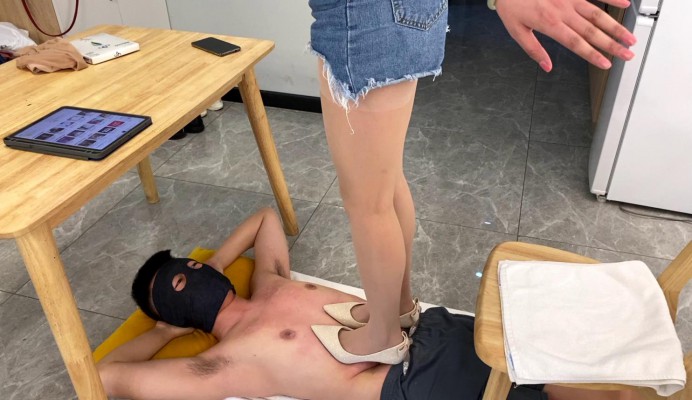 内容:小溪女王踩了好几个毯子,很累。但是也不能让毯子休息,便把毯子叫了过来,用鞋跟一点点踩出印记,虽然坐在椅子上,但是小溪女王踩的每下都很用力。后半段休息差不多了,也跳起来踩这个毯子。