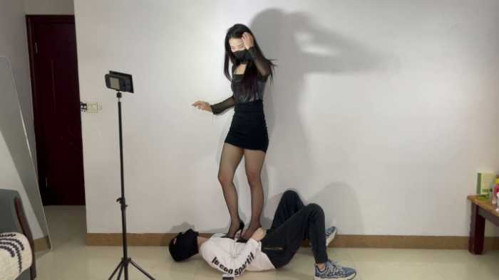 职院学生小贝12CM黑丝大红底超高跟全体重踩踏 YC-250104-4