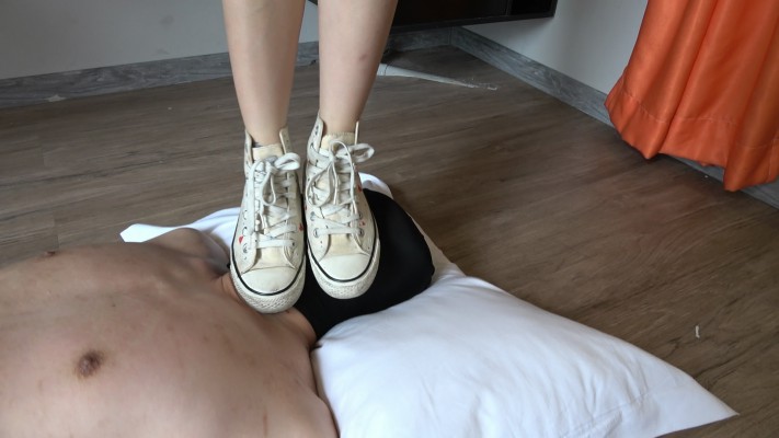 一双穿出脏兮兮的匡威鞋踩踏贱狗,蹦踩,踩头,踩裆,高空跳踩。