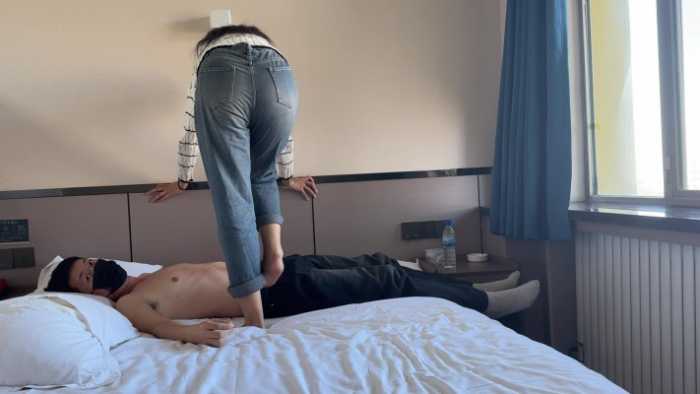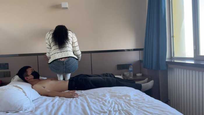 能够感觉得到女主比较害羞,在身上长时间站立,时不时小心用脚试探,生怕把我踩疼了。
