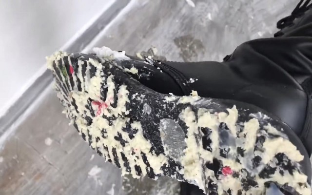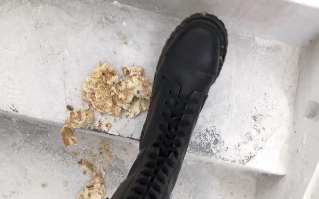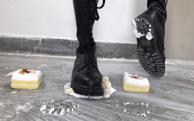 这次依然是楼道拍摄,从上次尴尬的经历后找了一个人烟稀少的废弃楼房,地面也是非常脏。小姐姐的长靴非常酷,将白白净净的小蛋糕和面包全部踩烂,最后全部陷入了鞋底的纹路里,到底该如何清理呢……