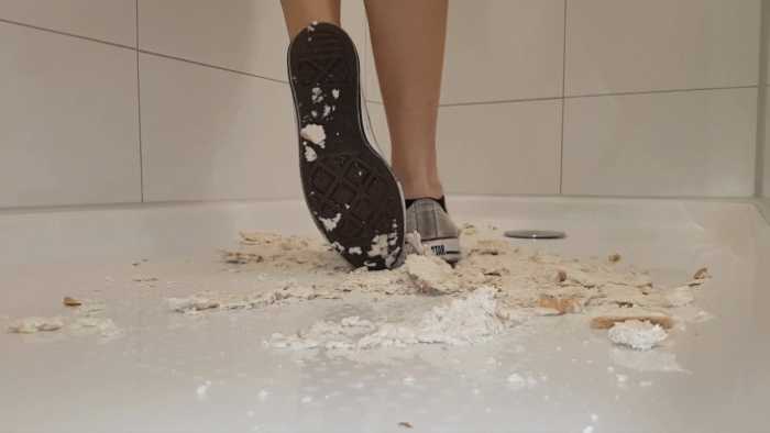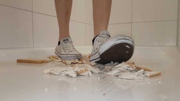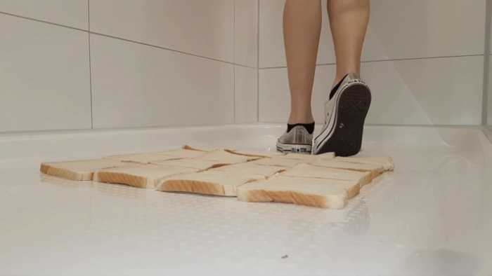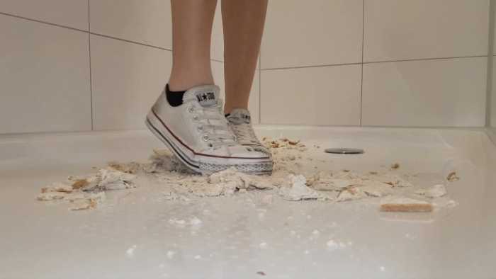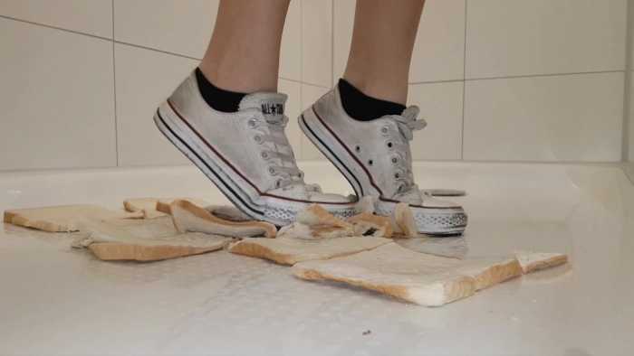 健身美女小姐姐白色匡威鞋来回来去走过面包地毯。少女的脏脏帆布鞋是多少人青春校园时的记忆和最爱,这次小姐姐制作的狗粮再配上超多口水,真实太幸福了……