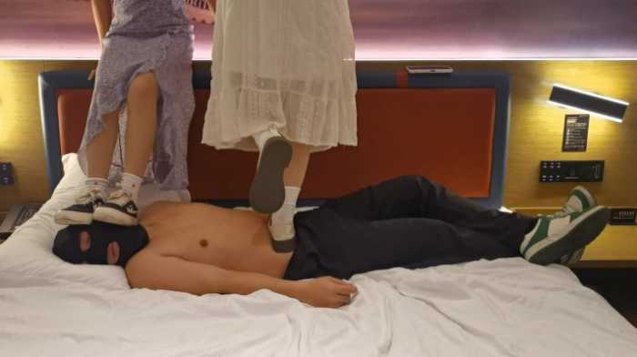 两位小主对比第一次进步神速,小婵简直就是踩头大户,踩头绝不含糊,小姿作为汗脚选手每次接触鼻子的时候直接让我元气充满,闻脚的时候她的脚也不安分,虽然小婵也是哈哈哈,但是这部分更喜欢小姿,也有踩脖子片段,舒畅啊。这次踩踏让我再次重新感受到了以前渴望的感觉,自己很渺小,女主很高傲的就踩在自己身上,你就看陷进去深不深把,两小主下脚还是干脆利落,头基本没有歇息的时候,肚子和胸口也是在蹦蹦跳跳,要不就是在动来动去,反正不会闲着,闻脚那会,另一个一直在跳呢,踩的也丰富,从床上跳上来啊,在手上跳啊,一起跳啊,最后,两个人不同频率的踏步啊。这次很像小时候和邻家姑娘玩,小婵最闹腾了,我在给她们脱鞋的时候,她直接一脚踩在我头上,用力压着,不给我脱哈哈哈,应该蛮多人脑子里都有对应的武侠剧幻想把小时候,哈哈哈,脱袜子也是,有一只还是蹭我的脸给蹭下去的,羞辱感拉满,但是又不失快乐,有时候挺疼的,用手去抓脚,也没用~~继续踩~~不然就是踢开~~~强制踩最爱了
