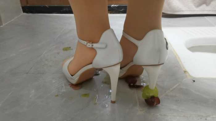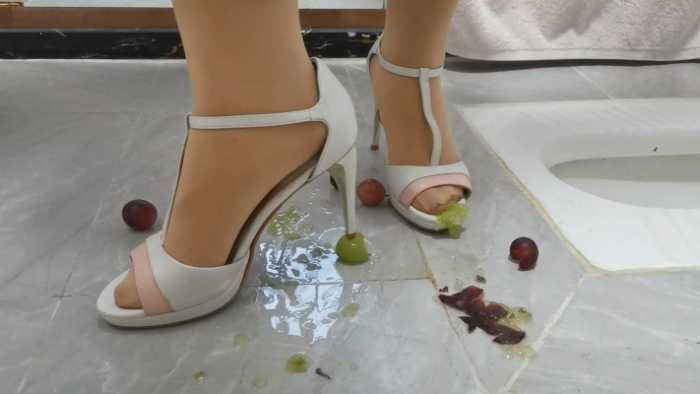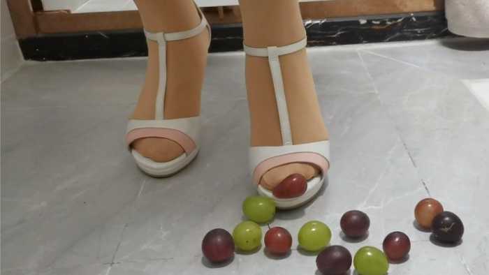 定制剧情,室内卫生间场景,将葡萄塞入高跟鞋内用脚在鞋子里面碾烂,将葡萄用丝袜踩,用大脚趾在鞋内一个个压扁,用鞋跟戳烂葡萄,最后把剩下的葡萄倒在地上,一顿狂踩。脱下高跟鞋,展示被葡萄汁水浸湿的丝袜