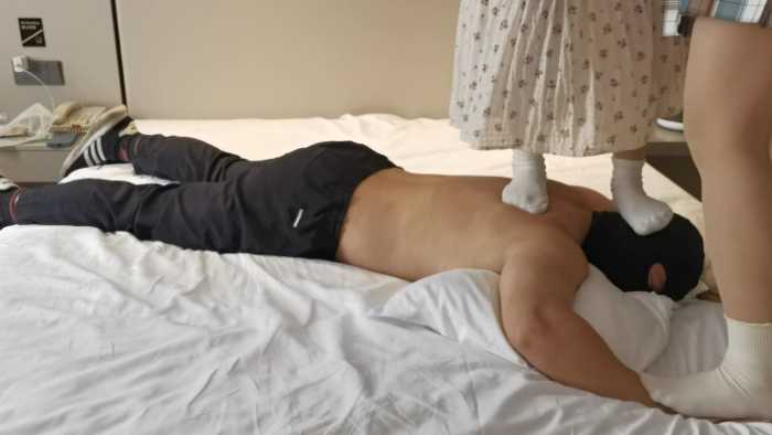 小翠的jio比较有气味,毯子实名吐槽,其实白袜前面那里发黄挺明显的,小翠很闹腾,经常突然给毯子施压,直接给背暴击,手重压,头来点大震荡,两位小主坐在背上的时候喜欢晃脚,小翠还成功在坐着的时候,反踢毯子,闻jio的时候,小姿还直接把他头踹下去,小翠的脚趾头很有力量,有自发性,最后毯子跪着还直接站着踩在背上,视频欢乐风居多,有对话。