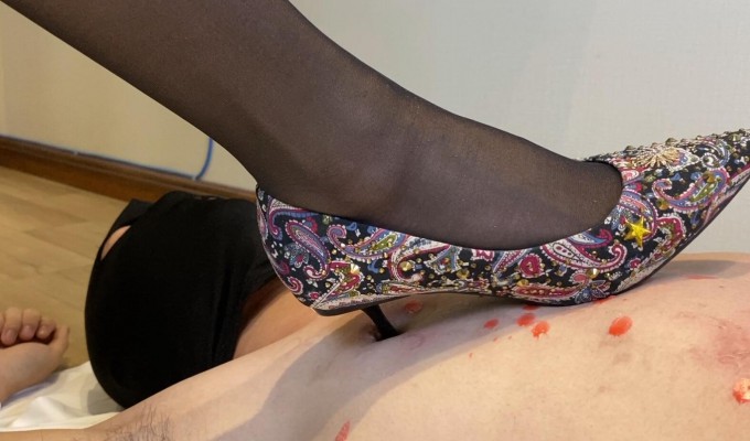 内容:小溪主人今天准备了一双满钻的蓝色高跟鞋,一双低跟的走秀高跟鞋。踩踏毯子依旧还是一如既往的:狠。多种方式踩踏毯子:让M背靠着墙,就露出一小块肚子的位置,集中全身力量踩毯子的小肚子,但毯子依旧是快乐的。