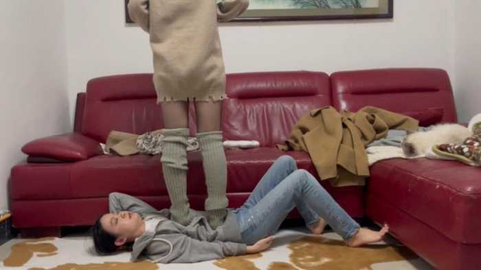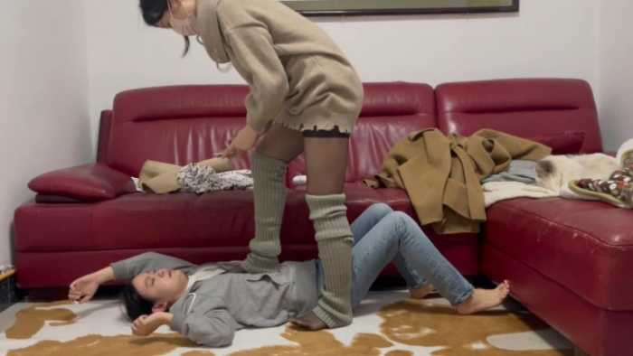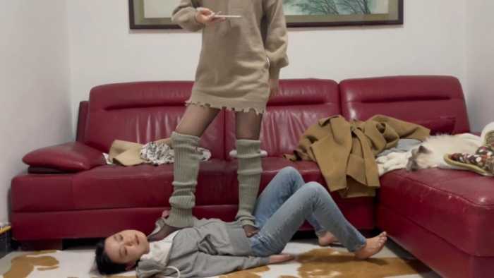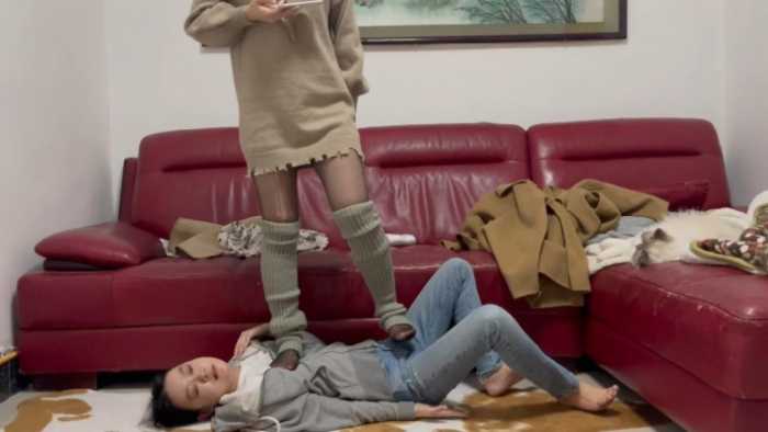 最强女m强势回归 给同好上福利来了! 这部我们女m身着休闲装一身轻松 被漂亮的大闺蜜穿着性感灰丝 全体重践踏 风格依旧不变 希望大家喜欢