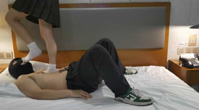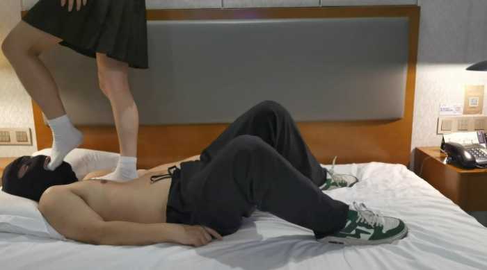 这个百褶裙+白袜穿搭看着挺有感觉的吧?应该都曾幻想过被这样踩在脚下把?小幸全程都是在重度踩,有点调戏,在闻和舔jio的时候有点语言,有点,但是不多,有点酸酸的,嗯,就是这种才会越踩越亢奋~我们的落脚声一直应该都挺响的?蹦蹦跳跳是家常便饭,白袜好像基本都是残影