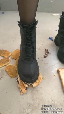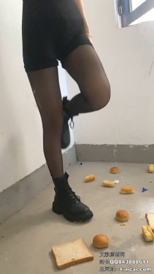 女主穿黑丝马丁靴,在脏脏的楼道内制作三种面包糕点狗粮