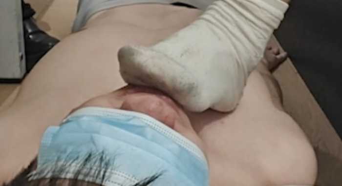 【影片预览及介绍说明】:几个月前私人定制的 重量级S足足穿了12天的袜子 每一天都有记录 而且她在复习考研 总在教室里 一穿一整天 有时候住在考研学校里 都不敢脱鞋 最后一天还特意让她穿了靴子 然后还爬了14楼上来。味道超级重 原子弹的味道。先是穿着靴子各种跳踩 踩头 踢裆 。然后脱了靴子,脱的时候就能感觉到腿上全是汗 然后味道直接冲天灵盖 整个房间都是味道 连她自己都受不了了。真的有点闻不下去 , 真的要不行了 硬着头皮闻的 然后还让我舔 真的有点下不去口 适应了一会 才开始舔 袜子超级湿 全是汗水 然后又脱了袜子清理脚趾 都是汗和泥。最后女主把袜子塞到m嘴里鼻子边然后用保鲜膜封住 又是一顿踩。结束后直接想吐 把袜子扔到垃圾桶 又觉得味道太大 怕打扫的阿姨说 然后用打包带走。这次玩完委了快一个月。
