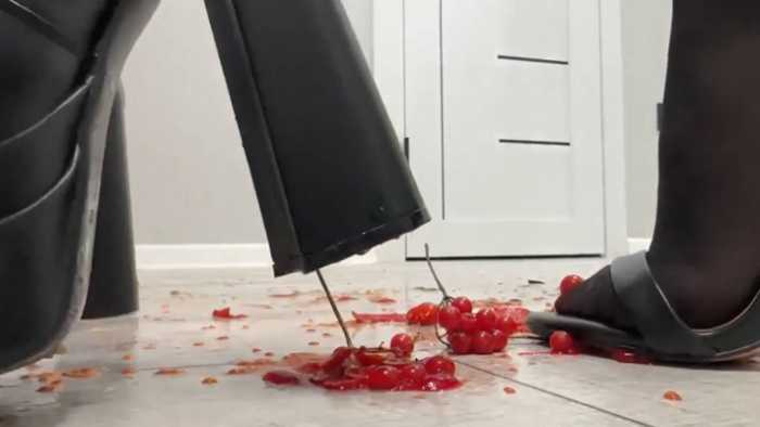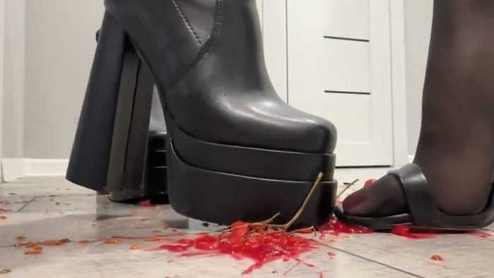两位美女长靴黑丝高跟凉鞋踩烂水果 JS250709~6
